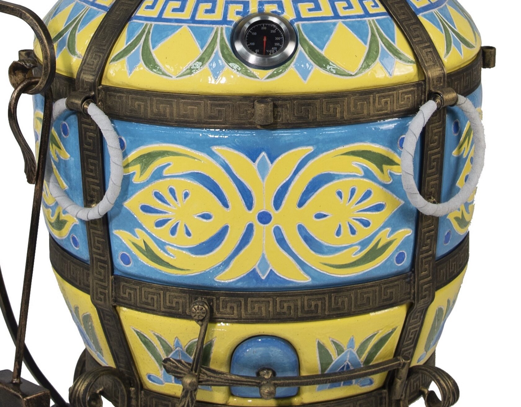 *Майолика — это особая технология изготовления керамики. Получаемые изделия выглядят ярко, сочно, потому что керамика, в нашем случае тандыр, расписывается по предварительно обожженному и подготовленному белой эмалью черепку. Фантазия художников не имеет границ. Вы можете оценить как предельно яркие узорчатые росписи, так и практически картины.