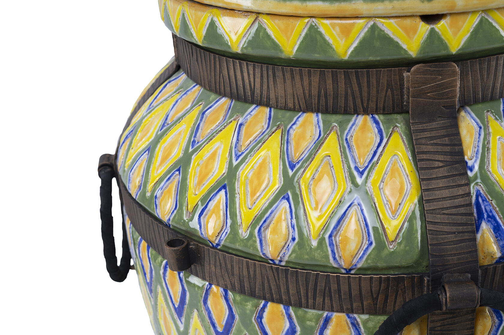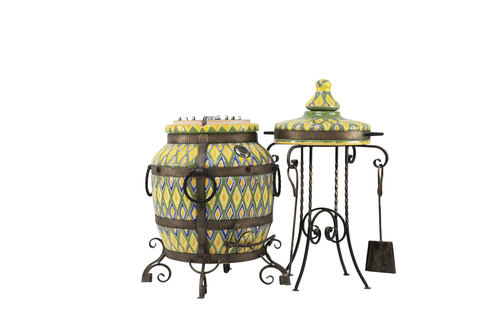 *Майолика — это особая технология изготовления керамики. Получаемые изделия выглядят ярко, сочно, потому что керамика, в нашем случае тандыр, расписывается по предварительно обожженному и подготовленному белой эмалью черепку. Фантазия художников не имеет границ. Вы можете оценить как предельно яркие узорчатые росписи, так и практически картины.