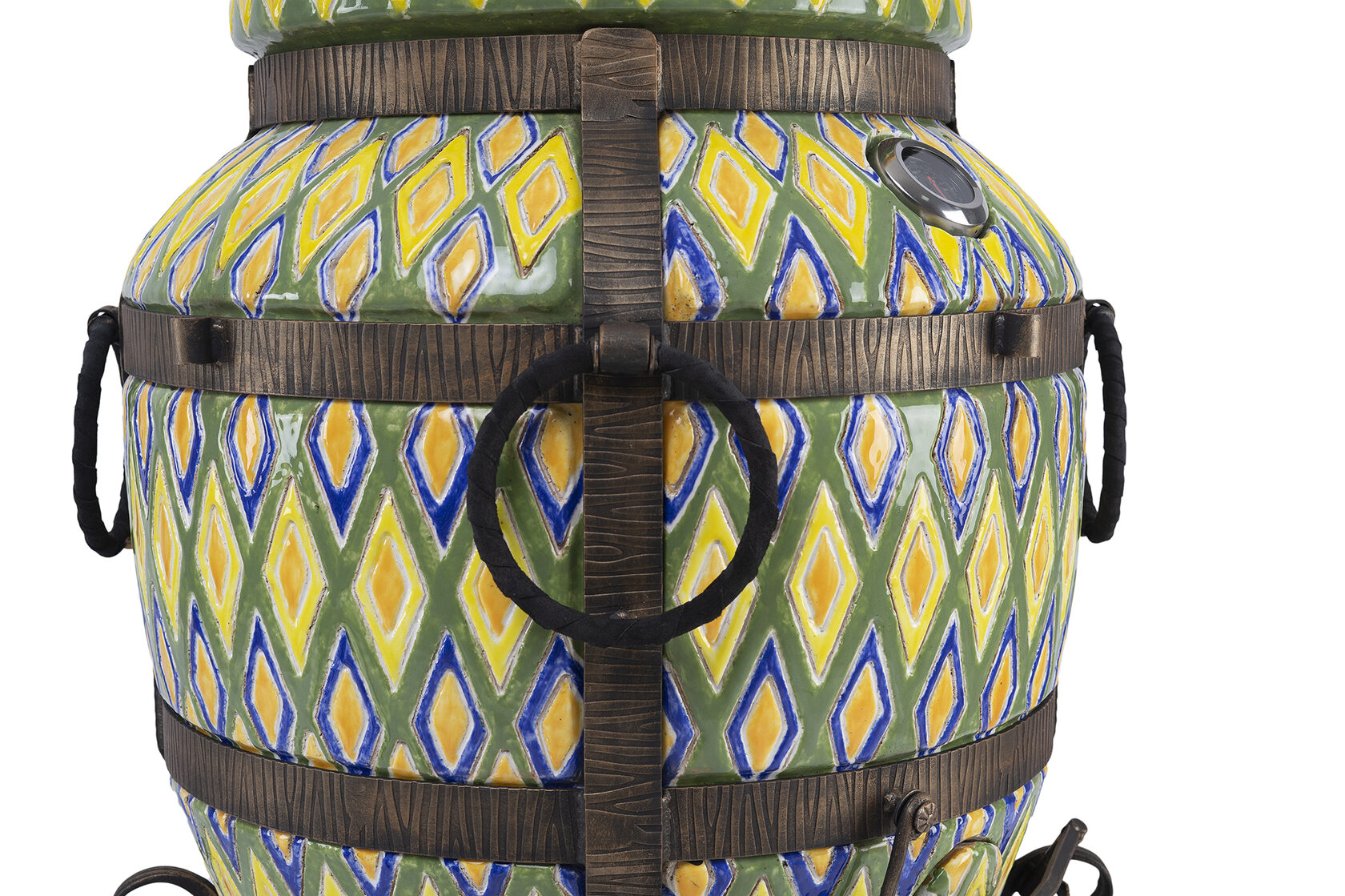 Олицетворяющие Восток строгость, умеренность и элегантность в полной мере отражены в облике эксклюзивного тандыра «Восточный». Классическая форма кувшина и аккуратный геометрический узор – этот тандыр по своему характеру традиционен и скромен. Но это именно та скромность, которая привлекает и манит к себе куда сильнее вычурности и помпезности, вызывая одобрение и уважение у смотрящего.